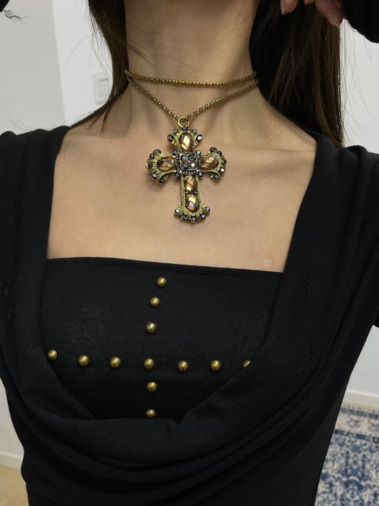 Vintage Style Gem-Encrusted Cross Pendant Necklace