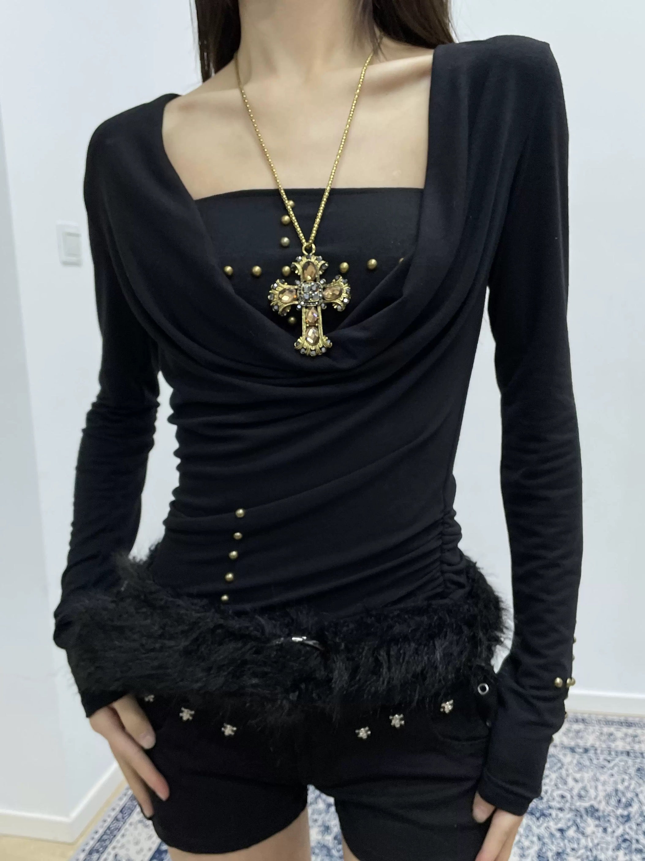 Embellished Cowl Sleeve & Bandeau Two Piece Top