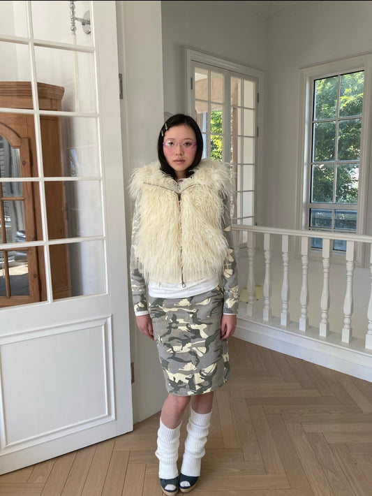 AE30 Saint Mini Camo Ruffle Skirt with PU Waistband