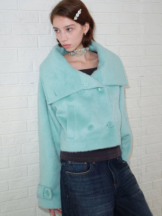 SOLWEIGE Wool Blend Textured Double-Breasted Short Coat