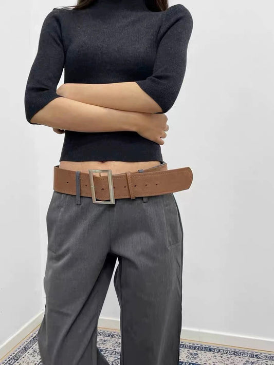 Frosted Buckle Wide Suede Belt