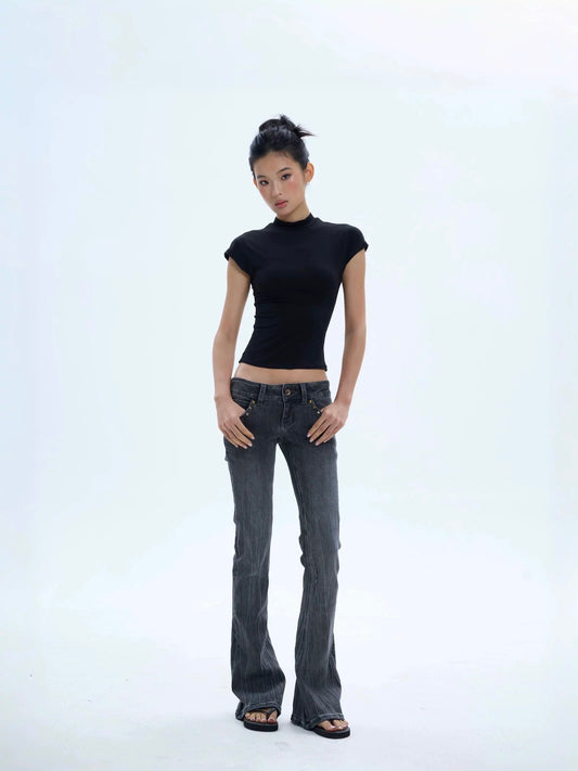 (Pre-Order) Veryrareme Retro Low Waisted Studded Flared Jeans