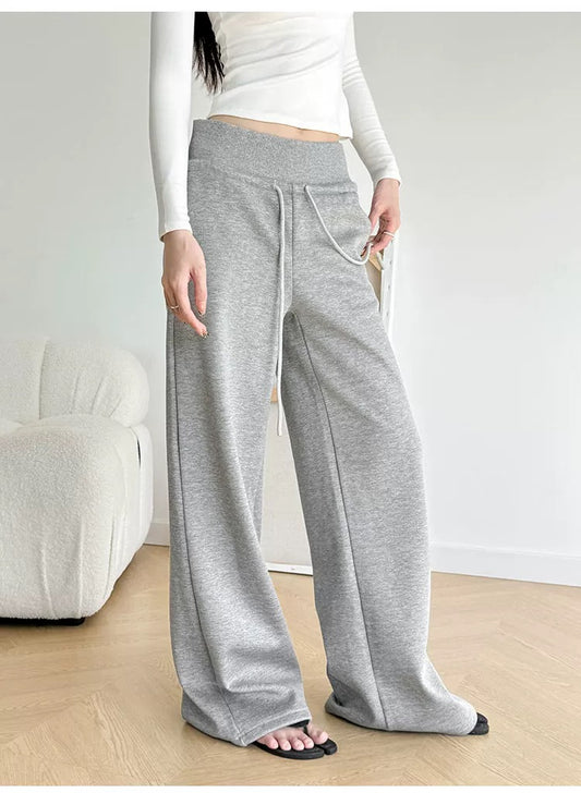 High Waisted Wide Leg Drawstring Joggers