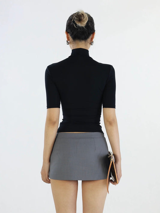 PinkMantis High Neck Short Sleeve Top – Black
