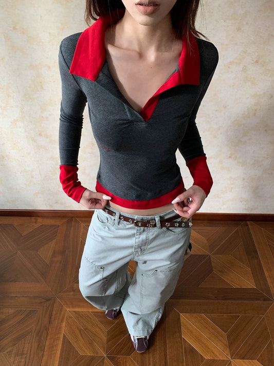 Long Sleeve Contrast Polo Top