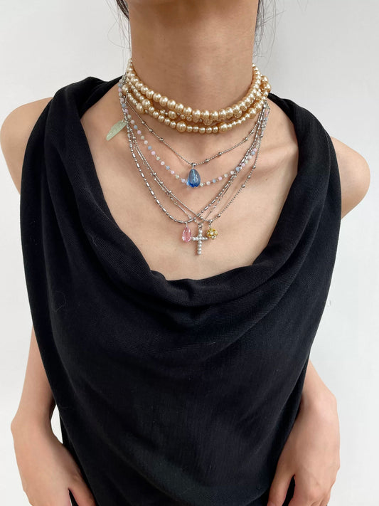 Gem & Pearl Layered Necklace Set