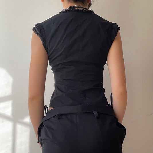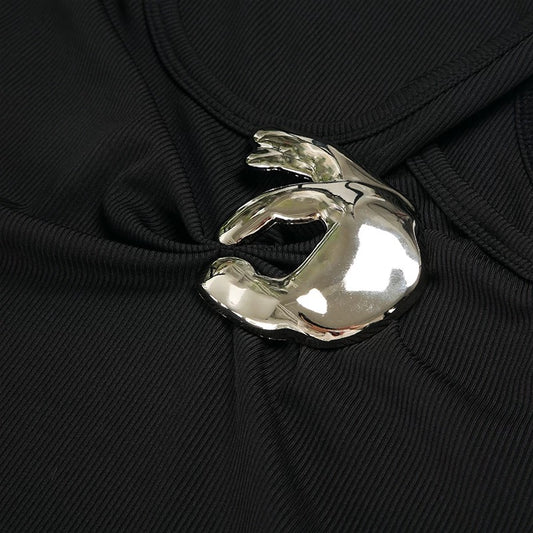 Black Ribbed Hand Detail Vest Top – Metal Pinch Design