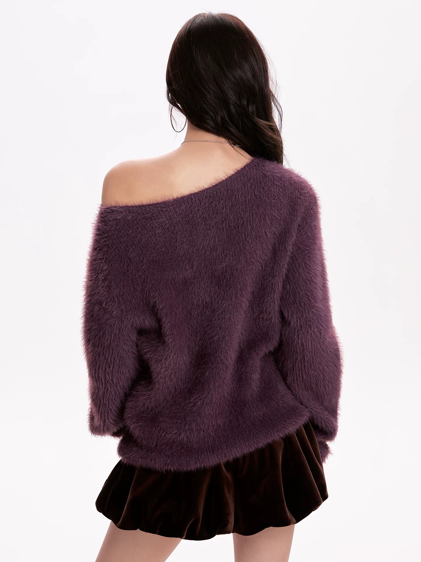 Purple Hairy Knit Off Shoulder Jumper
