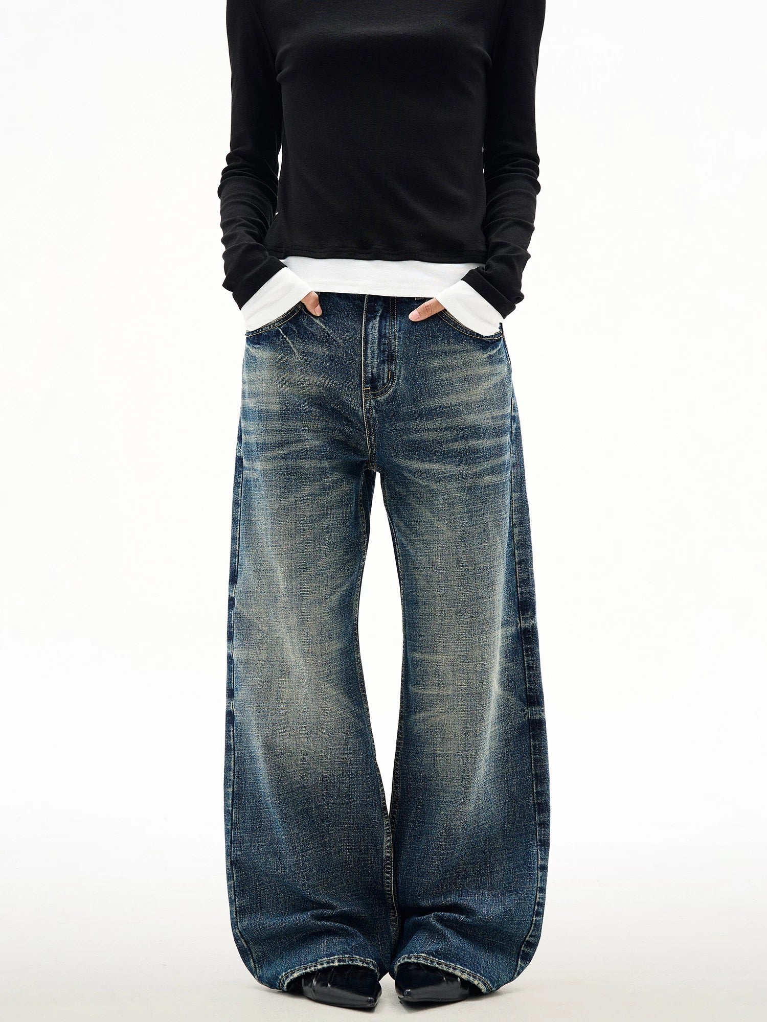 Straight Wide Leg Jeans with Bleached Whisker Effect